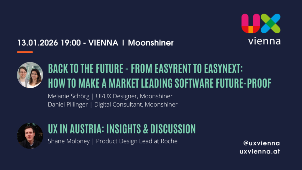 UX Vienna Evening Meetups are on the 2nd tuesday of every month — 12 times a year. Next time we meet at Moonshiner with 2 interesting talks.